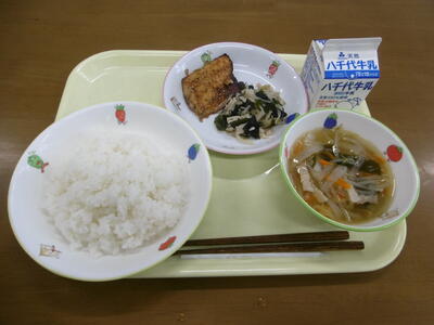 ・牛乳 ・ごはん ・松風焼き ・梅おかか和え ・とん汁 ・一口ゼリー