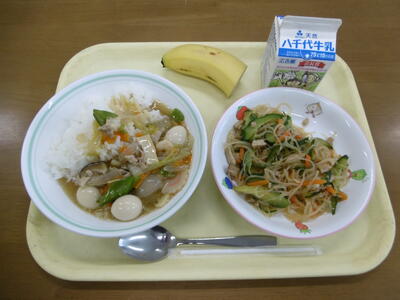 ・牛乳 ・中華丼 ・バンサンスウ ・バナナ