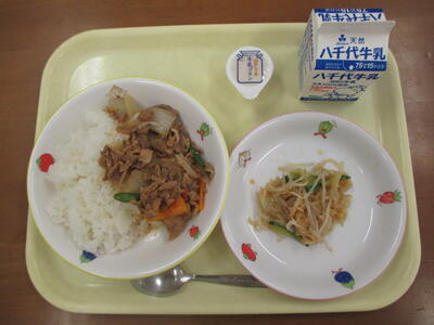 <献立>・豚肉どん(ごはん) ・ツナサラダ ・牛乳