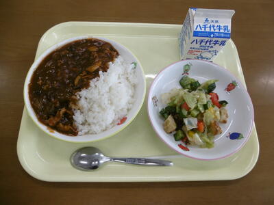 ・牛乳 ・ハヤシライス ・ちくわのコロコロサラダ
