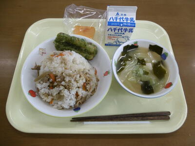 ・牛乳 ・わかめじゃこごはん ・生揚げの肉みそ煮 ・磯和え