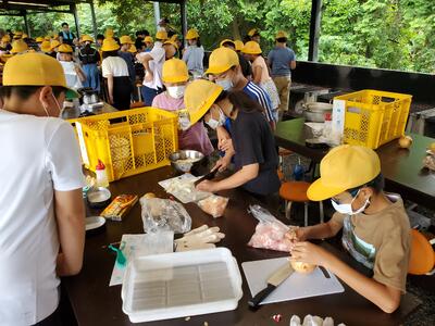 マザー牧場の野外炊事場につきました。子どもたちは口々に、