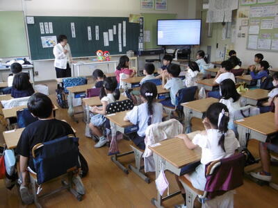 人権擁護委員の先生をお迎えし、2年生で人権教室を実施しました。子どもたちは、学校生活での身近な出来事を題材に、登場人物の気持ちを様々に想像しながら、相手を思いやることの大切さについて学びました。本校では、多様性を尊重し、互いを認め合う豊かな心の育成を目指し、毎年、2年生と3年生において「人権教室」を道徳教育の一環として年間指導計画に位置付け、計画的に実施しています。