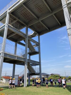 津波避難タワーは、近くに来るととても高く、迫力が有ります。
