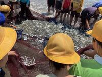 地引網、網を船で入れるところから見ることができました。なかなかできない経験です!!