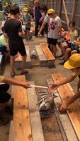 とったどー!子どもたちは、大歓声!大漁です!みんなで力を合わせて、無事、昼食のおかずをゲットしました。