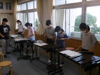 猛暑の中、8月8日(月)にNHKコンクールに出場するコーラス部の練習が続いています。今日は今までの練習の成果を、出勤していた先生方に披露してくれました。美しく素敵な歌声が広いアリーナに響きました。コンクール当日は、千葉県文化会館大ホールでの発表になります。大きな会場でも練習の成果を発揮しほしいと思います。妙典小みんなで応援しています。