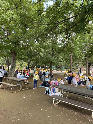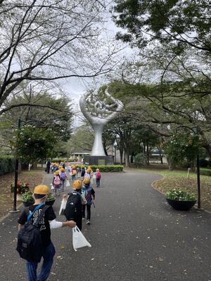 今日は、一年生がアンデルセン公園に校外学習に行きます。初めての遠足。今からワクワクいっぱいです。