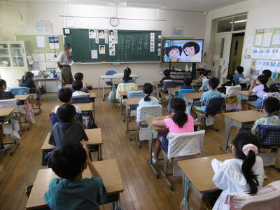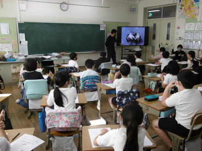 9月6日(火)、人権擁護委員の先生をお迎えし、3年生で人権教室を実施しました。子どもたちは、学校生活での身近な出来事を題材にしたDVDを視聴しながら、いじめがいかに人を傷つけるか、いじめをなくしていくにはどうすればよいか等について、いじめられている子、いじめている子、いじめを黙ってみている子のそれぞれの立場になって、真剣に考え、感想や意見を交流しました。