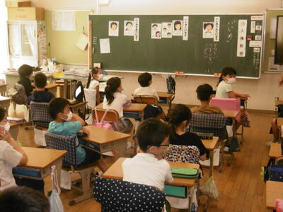 早いもので新年度が始まってから半年が経ち、1年の折り返し地点となりました。前期終業式では、「キャリア・パスポート(振り返りカード)」に書かれた一人一人の頑張りや成長を子どもたちと一緒に確かめ、称え合いました。また、後期開始にあたり、校長先生から「心のスイッチ」【作:東井義雄(教育者)】という詩が子どもたちに紹介されました。心機一転、新たなスタートです。保護者の皆様には、引き続きご理解・ご支援のほど、よろしくお願いいたします。