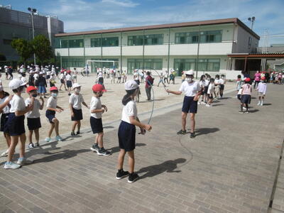 9月15日、22日、27日の3日間、代表委員会の企画による「異学年交流遊び」を実施しました。1年生と6年生、2年生と4年生、3年生と5年生が、それぞれペアを組み、秋晴れのもと、校庭で、鬼ごっこ、ドッジボール、長縄跳びなどで、元気いっぱい仲よく外遊びをしました。高学年児童が低学年児童のお世話をしながら、優しく遊びをリードする姿も頼もしいです。久しぶりの交流活動を経験し子どもたちの笑顔は一層楽しそうに輝いていました。