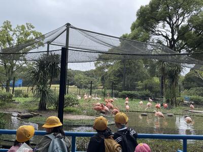 おいしいお弁当のあとは、午後の見学です。キリンやフラミンゴ、象のいる草原ゾーンをグループで見て回ります。