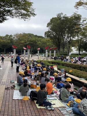 土曜日は急な大雨で途中から延期になってしまいましたが、今日は青空の下、元気いっぱいに踊ったり走ったりすることができました。