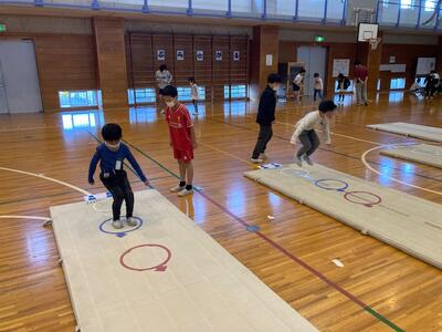 10月~11月、体育委員会が中心となり、全校で「体力向上大作戦」に取り組んでいます。業間休みになると、割り当てられた学年の子どもたちがアリーナに集まり、「上体起こし」「反復横跳び」「立ち幅跳び」「バトン投げ」などに、果敢にチャレンジしてしています。体育委員会の子どもたちが、各運動のやり方を優しく教えてくれるので、低学年の子どもたちも安心して楽しく運動しています。日頃、業間休みや昼休みには、多くの子どもたちが、青空の下、先生や友達と一緒に汗をかきながら、夢中で外遊びをしています。今後、さらに、運動への興味・関心を高め、日常生活での運動への意欲をさらに高めていきたいと思います。