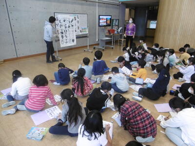 3・4年生では外国語活動、5・6年生では外国語(英語)を学習しています。どちらも、担任と一緒に外国語活動指導員の中村先生が指導してくださいます。10月は、「ハロウィン」を題材にした「英単語おはじきゲーム」をしたり、英語でアニマル・ソングを歌ったり、あいさつをしたりしながら、みんなで楽しく英語に親しんでいます。外国の文化に触れながら異文化理解を図るとともに、外国語(英語)による言語活動(聞く・話す・読む・書く)を通して、外国語(英語)を用いたコミュニケーションの素地となる資質や能力を育成しています。