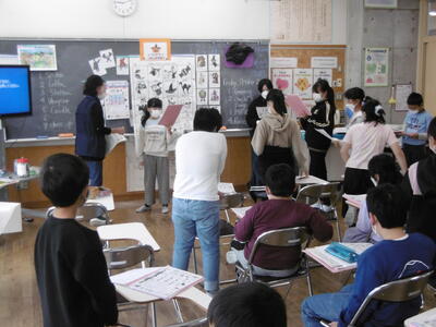 3年生では、総合的な学習の時間で「江戸川」をテーマに探究学習に取り組んでいます。学校前の江戸川放水路は、生物多様性の宝庫。子どもたちは、これまで江戸川放水路の干潟に繰り返し出かけ、市川自然博物館学芸員の金子さんや地域学校協働活動推進員の安達さんのご指導のもと、様々な生き物と出会い、触れ合ってきました。子どもたちの探究心は、とどまることなく、知りたいことや疑問が次々と湧いてきます。先日は、2組が、安達さんをゲスト・ティーチャーにお迎えして、「カニについての24の質問」について、教えていただきました。「カニによって、巣の形が違うのはなぜですか?」、「カニは、巣の中で何をしているのですか?」など、鋭い質問のオンパレードに、安達さんも嬉しそうに目を細めなら、写真や図を使って分かりやすく解説してくださいました。「実は、自然の世界のことは、まだよくわかっていないことがいっぱいあるんですよ。だから、よく観察することが大事なんだね。」授業終了後も、子どもたちからは、「おもしろかったあ!」「また、やりたい!」の声がたくさんあがっていました。