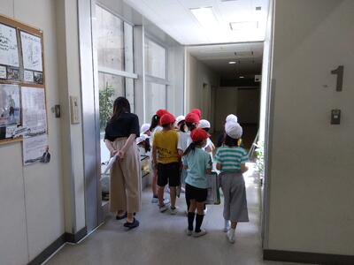 「失礼します。〇年〇組 〇〇です。学校探検に来ました。」と丁寧にご挨拶をしてから、入室していました。