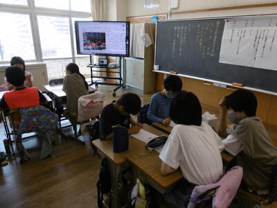 5年生が総合的な学習の時間(わくわくタイム)において、「妙典小」をテーマに探究活動をしています。1999年4月に開校した本校は、今年度、創立25周年目を迎えました。そこで、子どもたちは、母校や地域の魅力をみんなに伝えていきたいという願いを持ち、一人一人が自慢に感じていることを、さらに詳しく調べてきました。先日は、国語学習ともコラボし、ペア学年である3年生に向けて、探究活動の成果を発表!校舎や校庭、施設設備、学校生活、沿革、周囲の環境、地域の自然や文化等について、学習用端末(タブレット)を使いながら、楽しくわかりやすくプレゼンしました。3年生は、初めて聞く妙典小の「秘密」にも興味津々!地域のコミュニティ・クラブの方々も参加してくださり、5年生へ温かいアドバイスをしてくださいました。子どもたちは、アドバイスを生かして、さらに探究を深めていこうと張り切っています。