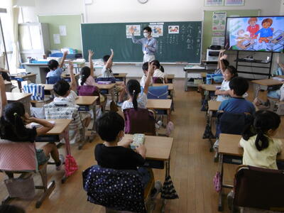 人権擁護委員の先生をお迎えし、2年生で人権教室を実施しました。子どもたちは、学校生活での身近な出来事を題材に、登場人物の気持ちを様々に想像しながら、相手を思いやることの大切さについて学びました。本校では、多様性を尊重し、互いを認め合う豊かな心の育成を目指し、毎年、2年生と3年生において「人権教室」を道徳教育の一環として年間指導計画に位置付け、計画的に実施しています。