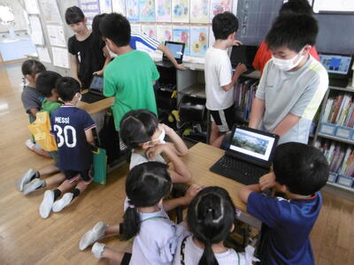 5年生の理科では、動物の発生や成長について学習します。実際に、メダカを育てながら雄雌の違いや生まれた卵の中の様子を観察していきます。顕微鏡を使って、卵の中を覗いてみると…、「見えた!見えた!」とあちらこちらから歓声が上がります。「目玉がある!」「動いてる!」…生命の神秘に触れた子どもたちは、これから、成長の様子をじっくり観察していきます。
