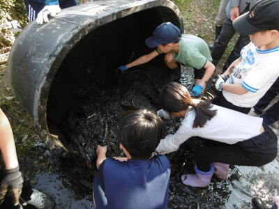 「妙典小ハス田クラブ」の皆さんが「レンコンの収穫体験」をしました。参加した子どもたちは、元ハス農家の篠田務さんや地域学校協働活動推進員の安達さんをはじめ、環境保護団体「三番瀬フォーラム」の皆さんのサポートのもと、作業を開始。まずは、みんなで協力してハス池の水をバケツリレーで汲み出し、水が少なくなったところで、ハス池の中から、手探りでレンコンを掘り当てていきます。子どもたちは、泥んこになりながら、「とったど~!」「これ、大きい!」と、次々にレンコンを手にして大はしゃぎ。掘ってみるまでレンコンができているかどうか心配でしたが、思わぬ大豊作!苦労して収穫したハスは、その場でバターしょう油風味の「レンコン・ステーキ」にして、試食しました。「おいし~い!」ホクホクとした食感とほのかな甘味に、子どもたちも笑顔いっぱいでした。子どもたちにとっては、地域の文化や自然に触れることのできる貴重な体験ですね。来年の植え付け、収穫も楽しみです。なお、「妙典小ハス田クラブ」の活動の様子を撮影した写真を妙典小教室棟1階に掲示しています。ぜひ、ご覧ください。