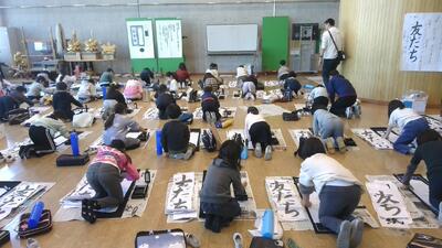今日は、3年生が書初めに挑戦しました。