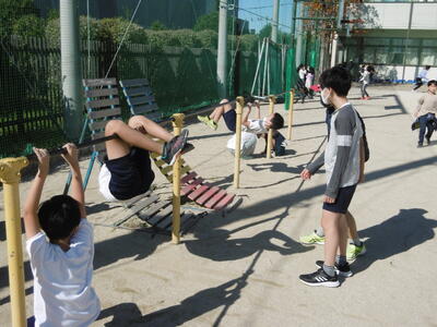 スポーツの秋!体を動かすには、とてもいい季節になりました。特に、小春日和の業間休みや昼休みには、「外遊び」をする子どもたちの数も一段と増えます。校庭には、縄跳び、鬼ごっこ、ドッジボール、ブランコ、鉄棒、アスレチック、竹馬など、友だちや先生と一緒に夢中で遊んでいる元気な声が響き渡っています。先日、「学校評価(6月)結果について」(※本校HP「学校評価」コーナーをご参照ください)にて、お知らせしましたとおり、本校の課題の一つに「体力向上」があります。近年、子どもの体力低下が指摘されてから久しいですが、その傾向は、本校でも顕著に表れています。生活環境や子どもの遊び方が時代とともに変化する中で、体を動かす機会は、少なくなってしまいがちです。学校では、子どもたちの「確かな学力、豊かな心、健やかな体」の調和のとれた成長を願い、教育活動を展開していますが、特に、健やかな体においては、「健康・安全のセルフマネジメント」を重点目標にしています。自らの健康や安全に関心を持ち、「体力向上」や「基本的な生活習慣」について自己管理していけるように、体育科や学級活動、家庭科等をはじめ、教育活動全体を通して支援しています。「外遊び」の奨励もその一つです。