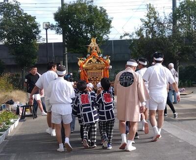 はじめに大人用の神輿で、この地域ならではの担ぎ方(行徳地域では神輿を「揉む」と言います)のお披露目が行われ、その後、子供たちも担がせていただきました。