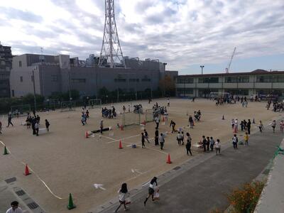 校庭やアリーナ、センターホール、図工室に地域の方々が様々なブースを設けてくださり、子供たちが思い思いに楽しみました。