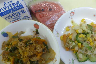 7月1日(火)の給食 投稿日時 : 07/01 妙典小学校管理者 今日の献立は、ご飯豚キムチ丼ツナコーンサラダすいか牛乳です。 今日のワンポイントは・・・「 すいか 」についてです。今日の献立には、すいかがあります。このすいかは、八百屋(やおや)さんが千葉県の冨里市(とみさとし)から持ってきてくれました。「あじきらら」という品種のすいか、コクのある甘みが特徴のすいかです。八百屋さんや切ってくれた調理員さんに感謝をして味わってたべましょう。 Tweet {{options.likeCount}} {{options.likeCount}} {{options.unlikeCount}} {{options.unlikeCount}} 0 コメント