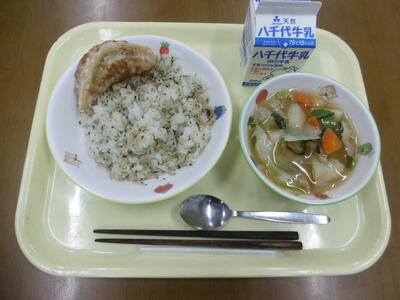 今日の給食 11月30日(水) 投稿日時 : 2022/12/01 妙典小学校管理者 <献立> ・牛乳 ・じゃこガーリックごはん ・あげ餃子 ・幸せの石のスープ <給食室から> 今日のワンポイントは、幸せの石のスープです。今日の汁物はお話給食第4弾のスープです。にんじん、キャベツ、たまねぎ、小松菜など、たくさんの野菜とベーコンをじっくり火にかけ、加熱しているので、うまみたっぷりです。スープは、たくさんの種類の食材を組み合わせることで、よりおいしくなります。※「あげ餃子」が食べやすいように、お箸を用意しました Tweet {{options.likeCount}} {{options.likeCount}} {{options.unlikeCount}} {{options.unlikeCount}} 0 コメント