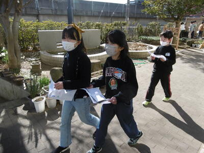 栽培委員会が、全校児童に学校で育てている花の魅力を知り、もっと興味・関心をもってもらおうと、「花のスタンプラリー」を実施しています。事前に全校児童に配付された「花のパンフレット」には、花の写真と説明、加えて「花に関するクイズ」が出題されています。1問正解すると1個のスタンプを押してもらえます。子どもたちは、パンフレットを手に、実際に花を観察したり、学校図書館の本で調べたりしながら、クイズにチャレンジ!スタンプを押してもらい、大喜びしていました。