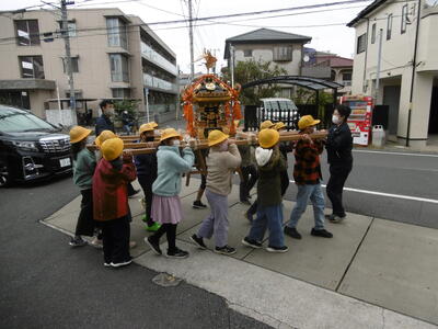 4年生では、総合的な学習の時間に「妙典の町」をテーマに探究学習に取り組んでいます。歴史、文化、自然など、妙典には魅力が、いっぱい!子どもたちは、町探検での発見や気付きをもとに、「自分の知りたいこと」について、さらに学びを深めています。先日は、2組、3組が、「神輿(みこし)のなぞ」について調べるために、「行徳神輿ミュージアム」の見学に行きました。中台製作所の社長さんから、神輿の実物を前に、その構造や製作工程、材料となる木材、漆、金属などについて「たくさんのひみつ」を教えていただきました。「神輿は、釘や接着剤を一切使わないで、組み立てているんだよ」と聞いて、子どもたちは、びっくり!その理由には、「なるほど!」と納得していました。職人さんの実際の仕事の様子も見学させていただき、カンナ削りや彫金の「職人技」に舌を巻いていました。最後は、みんなでお神輿も担がせていただき、大満足の笑顔でした。