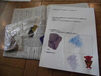感染防止対策をしっかりとして、本物の縄文土器の説明を受けたり、石器を使って新聞紙を切ったりしました。