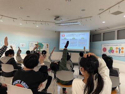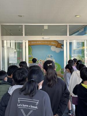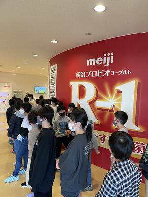 明治なるほどファクトリーでは、牛乳やヨーグルトなどの乳製品が出来る工程を見学を交えながら学ぶことができました。また、明治が取り組んでいるSDGsについても教えていただきました。お土産もいただき、子供達はニコニコ顔で帰校します。