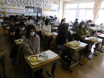 1年生保護者43名(希望者)のご参加をいただき、給食試食会を3年ぶりに実施しました。献立は、子どもたちにも大人気の「キーマカレー、ひじきのマリネ、フルーツヨーグルト」です。本校では、児童、教職員合わせて約830食を1人の栄養士と10人の調理師で調理しています。ご参加いただきました保護者の皆様には、子どもたちが毎日食べている給食が、どのようにして提供されているか、また、食に関する教育がどのように展開されているかなど、ご理解を深めていただけたことと思います。今後も、「安全・安心な給食」を実施していく中で、子どもたちの心身の健やかな成長を支援してまいります。