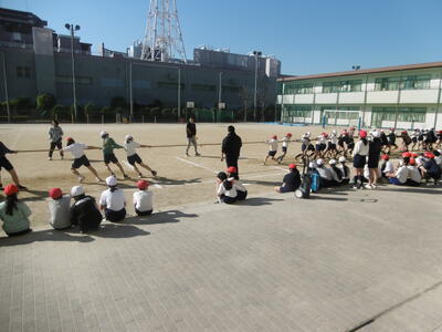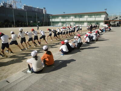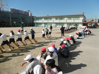 6年生が「スポーツ大会」を実施しました。「ころがしドッジボール」と「綱引き」の2種目で、クラス対抗で優勝をめざします。はあと学級の友達も交えて、子どもたちは、大はしゃぎ!校庭いっぱいに、子どもたちの楽しそうな笑顔と歓声が響き渡っていました。…こうして仲間たちと仲よく遊べるのも、あとわずか。新年を迎えると、卒業までいよいよラストスパートです!