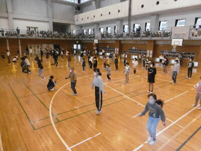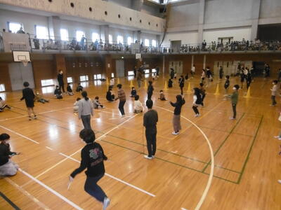 冬将軍の猛威にも負けず、妙典っ子は、元気いっぱい!校庭では、寒中を物ともせず、多くの子どもたちが外遊びをしています。そんな中、運動への興味・関心をさらに高め、楽しみながら体力向上を目指す取り組みとして、「二重跳びリレー大会」を開催しています。子どもたちは、5人1組のチームを組み、一人ずつ順番に二重跳びをしていきます。引っかかってしまったら、次の人と順次交代です。どれだけ長時間跳んでいられるかをチーム対応で競います。今回応募したのは、14チーム(70人)。先日の予選大会では、多くのギャラリーの応援を背にしながら、各チームの子どもたちが、リズミカルかつ軽快に跳び続けていました。跳んだあとは、ヘトヘトですが、額には、さわやかな汗が光っていました。さて、結果は、見事6チームが、1月31日の決勝戦に進出!これから、さらに練習を重ねて、優勝を目指します!