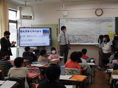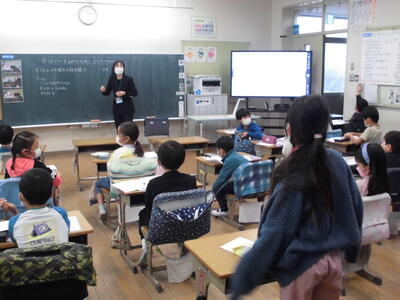 1月24日(火)、第6回校内授業研究会(今年度最終)を行いました。今回は「公開研究会」として、市内の12名の先生方にご参観いただきました。これまで、本校では、「主体的に学ぶ子の育成」を研究主題に掲げ、学習過程に応じた支援の工夫について、「生活科」や「総合的な学習の時間」を中心に、実践的な研究を積み重ねてきました。講師の先生方や参観された先生方からは、子どもたちが問題解決に向けて主体的・協働的に学んでいる姿に、高い評価をいただきました。今後も、「興味関心を持ち、見通しをもって粘り強く学習に取り組む。」「友だちの協働、地域の方々との交流、先人の考え方などを手掛かりに自分の考えを広げ、深める。」「自分の学びを振り返り、次につなげる。」…このような学びの姿を目標に、引き続き、支援の充実に努めてまいります。