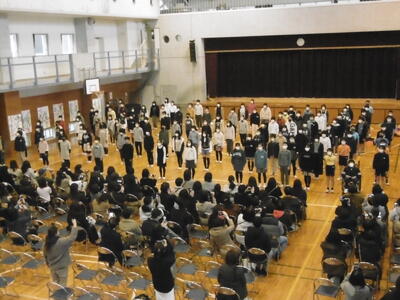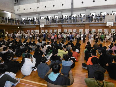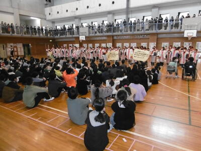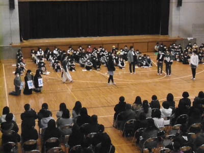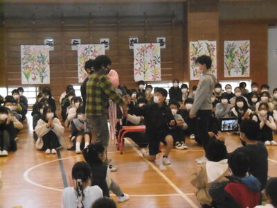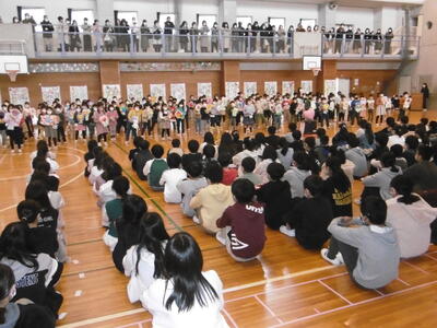 6年生の卒業の日が、いよいよ近づいてきました。2月24日(金)には、代表委員会が中心となって、6年生の新たな旅立ちを祝う「旅立ちの会」を開催しました。1~5年生が、お世話になった6年生に「ありがとう」の感謝の気持ちを込めて、各学年でパフォーマンスを披露します。6年生は、各学年の創意工夫を凝らした楽しい発表に拍手喝采!きっと、6年間のいろいろな思い出がよみがえってきていたことでしょう。そして、心のこもったお祝いの言葉は、いつまでも6年生の胸に残ることでしょう。フィナーレでは、6年生から「ビリーブ」の歌声が在校生にプレゼントされ、合わせて「こころん」の引継ぎがありました。6年生の皆さんが残してくれた、たくさんの「あったかはあと」。これからも、妙典小学校のみんなが、さらに大きく育てていってくれることでしょう。6年生の皆さん、今までありがとう!