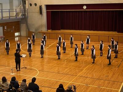 春の日差しが感じられた2月25日(土)、保護者の皆様をお迎えして、今年度最後のコーラス部のコンサート「春風のメロディー」を開催しました。今年度、コーラス部は、7月の音楽発表会を皮切りに、NHKコンクール、地区別音楽会、はあとふるコンサート、そして、12月の合唱フェスティバルと様々な大きな舞台を経験してきました。コロナ禍の中、思うような練習ができないというもどかしさもありましたが、「歌う」ことを通して、音楽の楽しさ、みんなでつくりあげていく喜び、やり遂げた達成感を十分に味わえたことでしょう。6年生は、このコンサートでコーラス部を「卒業」です。子どもたちは、「このメンバーで歌えるのは、これが最後」との思いとおうちの人への感謝の気持ちを込めて、一年間の集大成として全8曲を素敵なハーモニーで歌い上げました。保護者の皆様には、一年間温かいご支援・ご協力を賜りまして、心より感謝申し上げます。