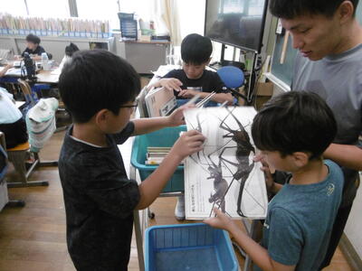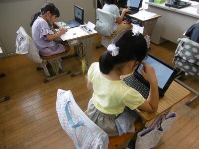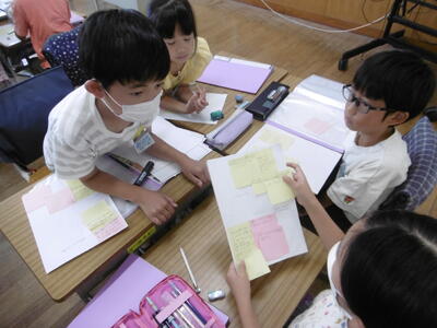 3年生が国語科の学習で「生き物ブック」作りにチャレンジしています。教科書教材「めだかの身の守り方」の発展学習として、自分が興味を持った生き物を選んで、その生態(体のつくり、食べもの、住んでいる場所、身の守り方等)について、意欲的に調べ学習を進めています。学校図書館の本を活用したり、学習用端末(タブレット)でインターネット検索をしたりしながら、必要な情報を取捨選択して、項目ごとにシートに整理しています。一人一人のシートを学級でまとめて、世界に一つのオリジナル「生き物ブック」を完成させます。出来上がりが楽しみです!