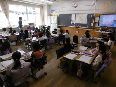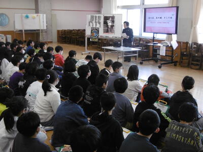 6年生が、「市川被爆者の会」の語り部、児玉三智子さんをお迎えして、「あの日、あの時、そして今」と題して、被爆体験の貴重なお話を伺いました。児玉さんは、日本原水爆被害者団体協議会の事務局次長もされており、国際社会でも核の恐怖と廃絶を訴え続けていらっしゃる方です。7歳(国民学校2年生)の時に広島で被爆した児玉さん。その壮絶な体験とその後の人生に、子どもたちは、驚きながらもじっと耳を傾けながら、真剣に向き合っていました。「唯一の被爆国である日本。核のない世界をつくるのは、皆さんです。」…児玉さんの静かで熱いメッセージは、子どもたちの心にどのように響いたでしょうか。ご家庭でもお話を聞いてあげてください。