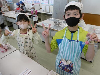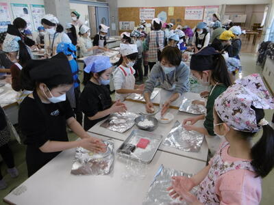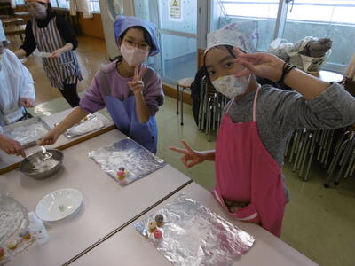 1月27日(土)、妙典中ブロックコミュニティクラブの主催による「バレンタインチョコづくり」が、本校家庭科室で開催されました。ブッロクの小学1~6年生まで約140名(3部制)が参加し、生チョコづくりにチャレンジ!指導してくださるのは、本校近隣のケーキ屋さんのシェフとコミュニティクラブスタッフの皆さんです。子どもたちは、茶、赤、白の3色のチョコを一つ一つすばやく掌で丸め、その上からカラーチップでかわいらしくデコレーションしていきます。出来上がったボール状の生チョコをセロハンで包装すると、素敵なプレゼントが完成!子どもたちもその出来栄えに大満足の笑顔!家の人へのプレゼントにしようと、大事そうにそっとカバンに入れていました。