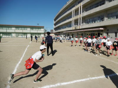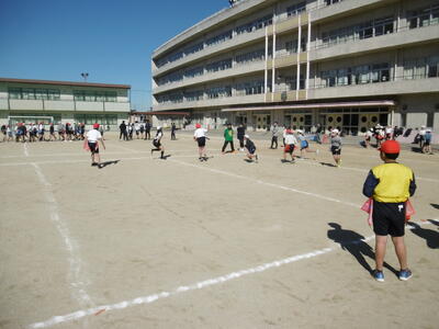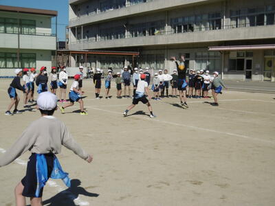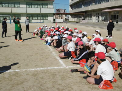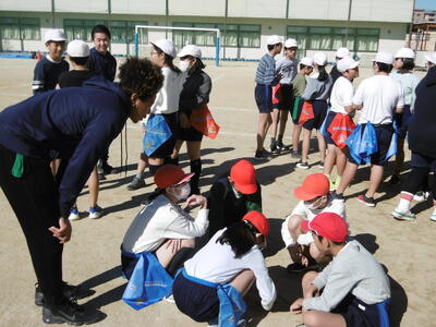 「フラッグフットボール」とは、令和2年度の小学校学習指導要領から、5・6年生の体育授業で学習するボール運動の一つとして紹介されているスポーツです。ラグビーとアメリカンフットボールの面白さをミックスしたようなニュースポーツですが、その魅力は、①鬼あそびの続きで楽しめる運動であること。②みんなで作戦や役割を話し合うこと。③運動が苦手な子でも、自分の役割を果たせること。などあります。今回は、ゲストティーチャーとして、アメリカンフットボールチーム「オービックシーガルズ」の皆さんをお迎えしてのスポーツ教室!校庭には、子どもたちの楽しそうな歓声があふれていました!