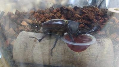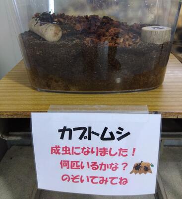 昨年、大町小学校からいただいた「カブトムシ」の幼虫が、成虫になりました!