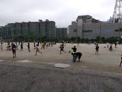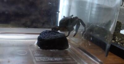 多分?江戸川河川敷の干潟から歩いてきた「カニ」もいます。