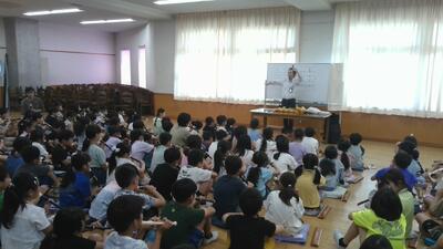 今日は、市川市道路交通部の交通安全担当の方々をお招きして、1年生と3年生がそれぞれ、交通安全について学びました。