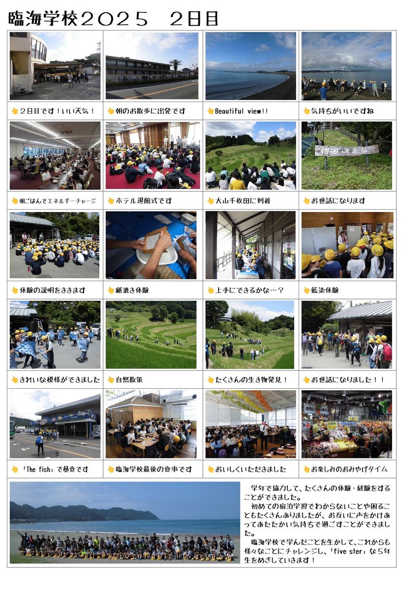 本日・明日と、5年生は臨海学校(鴨川・館山方面)です。