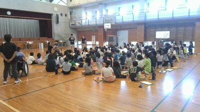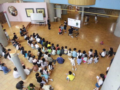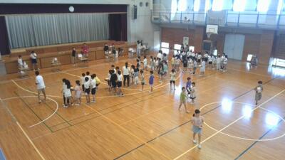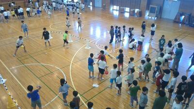 しかし、熱中症指数が危険度を越えると校庭には出られないため、体育委員会を中心に体育館を利用して「投力強化プロジェクト」を実施しています。